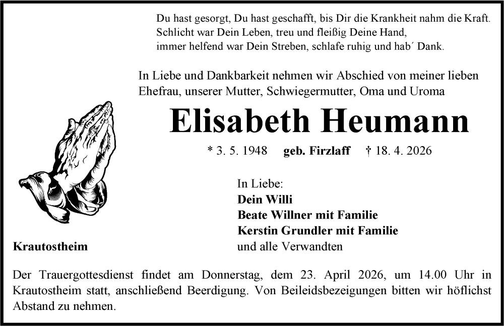 Elisabeth Heumann Traueranzeige