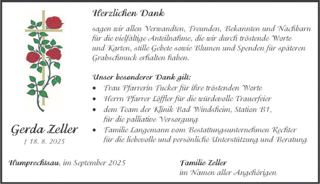 Gerda zeller Danksagung