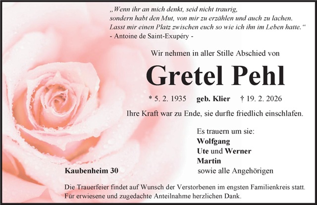 Gretel Pehl Traueranzeige