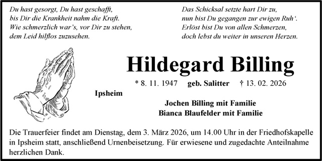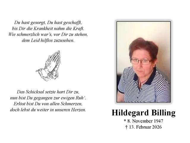 Hildegard Billing Traueranzeige