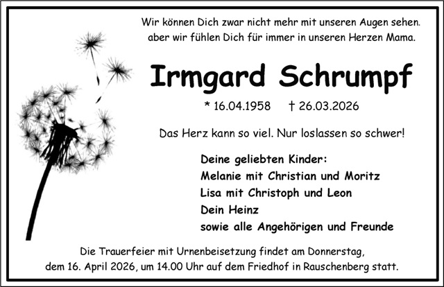 Irmgard Schrumpf Traueranzeige