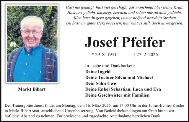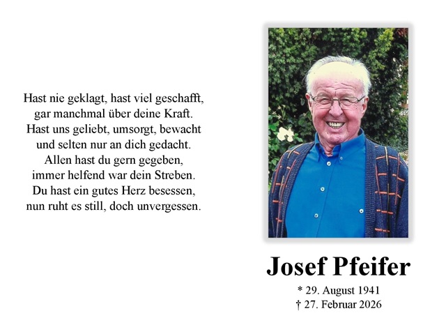 Josef Pfeifer Traueranzeige