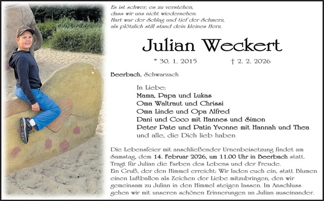 Julian Weckert Traueranzeige