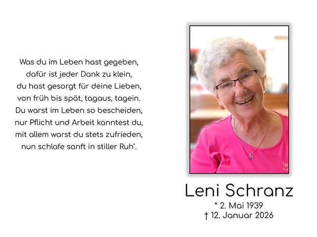 Leni Schranz Traueranzeige