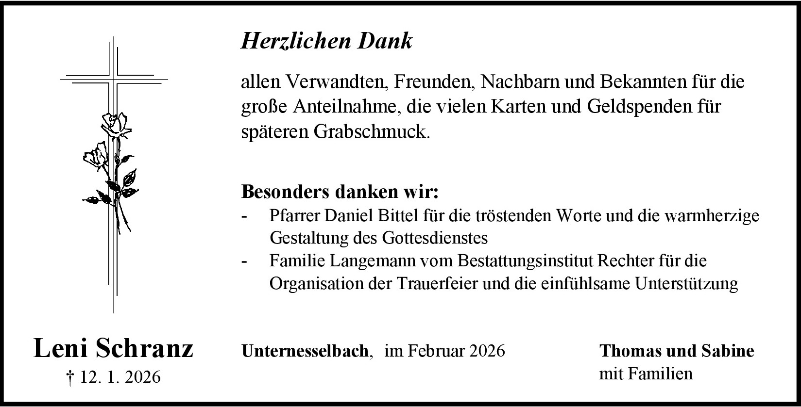 Leni Schranz Danksagung