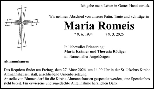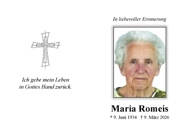 Maria Romeis Traueranzeige