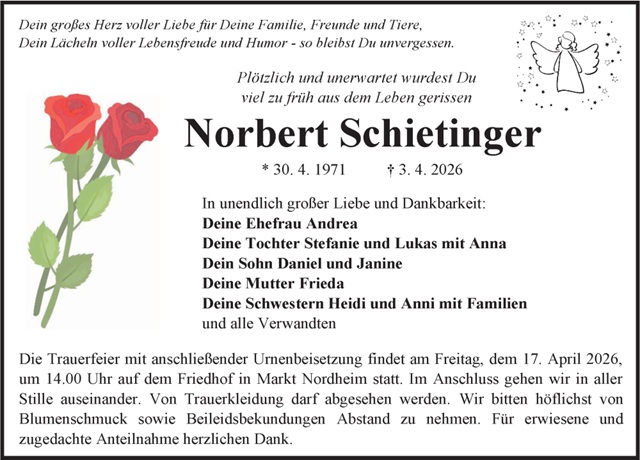 Norbert Schietinger Traueranzeige