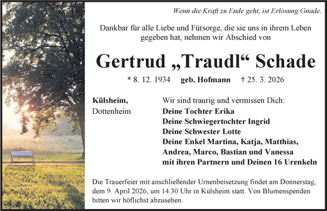 Traudl Schade Traueranzeige